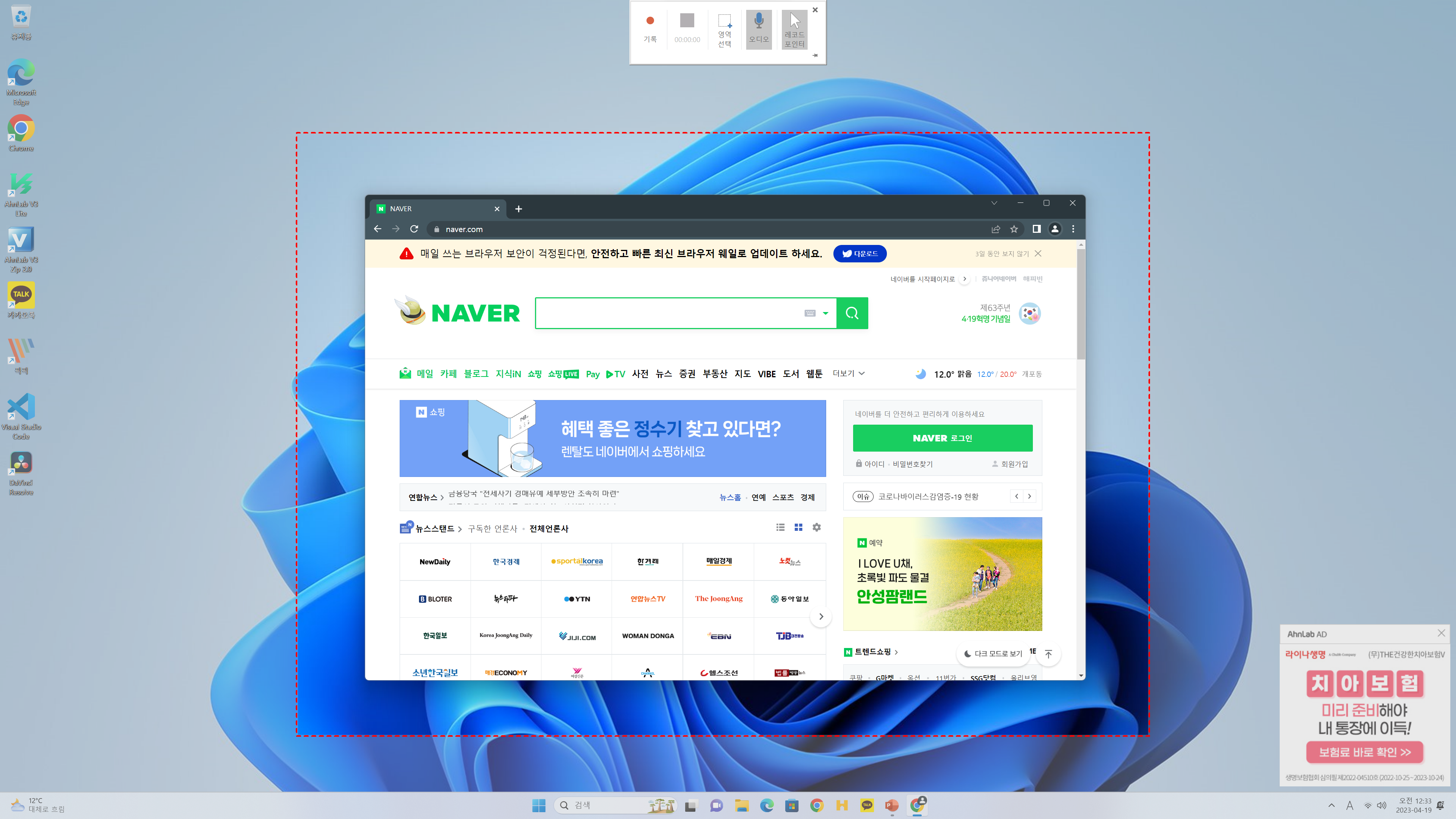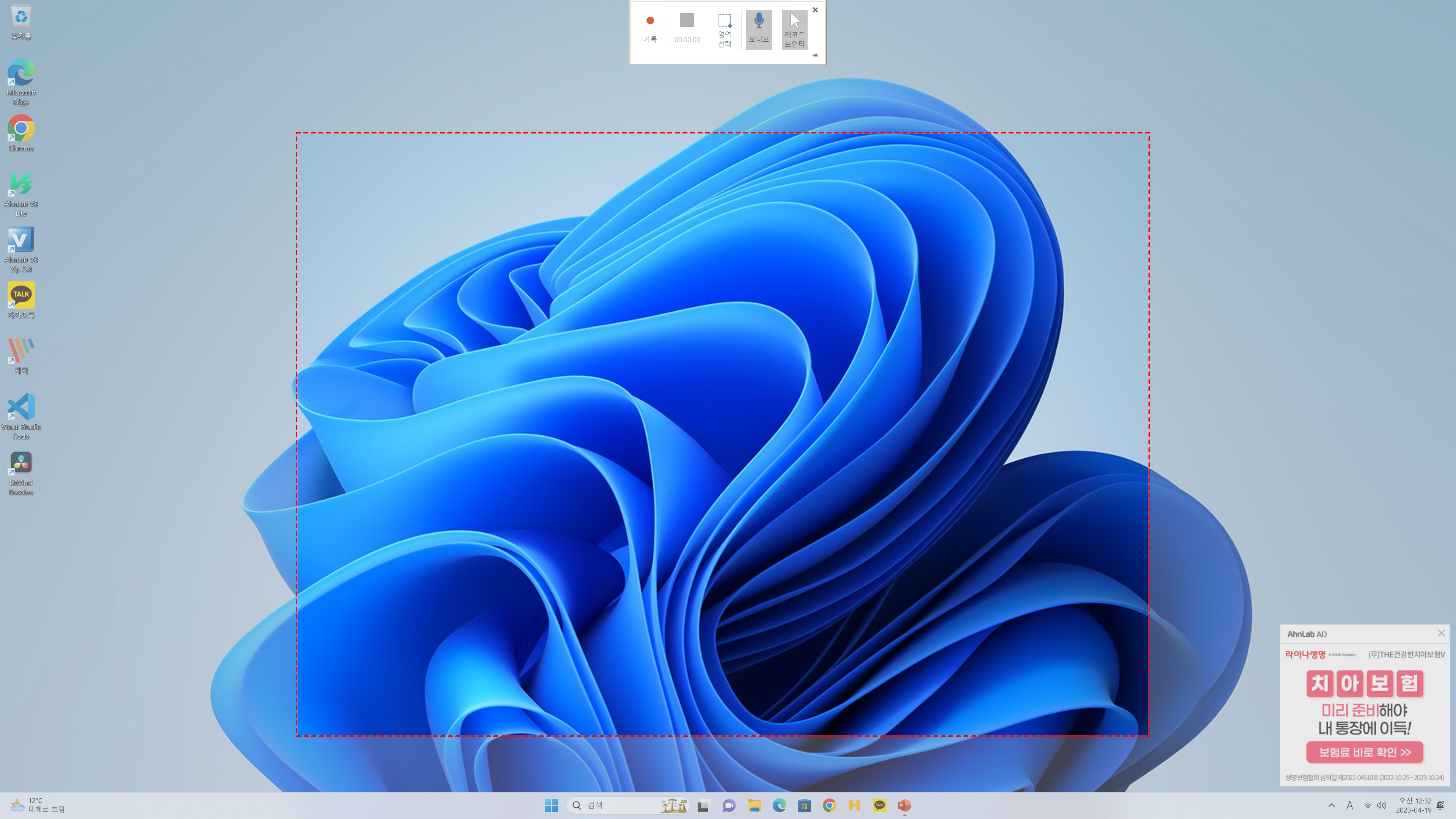 '기록'을 클릭해 주면 녹화를 시작할 수 있다.