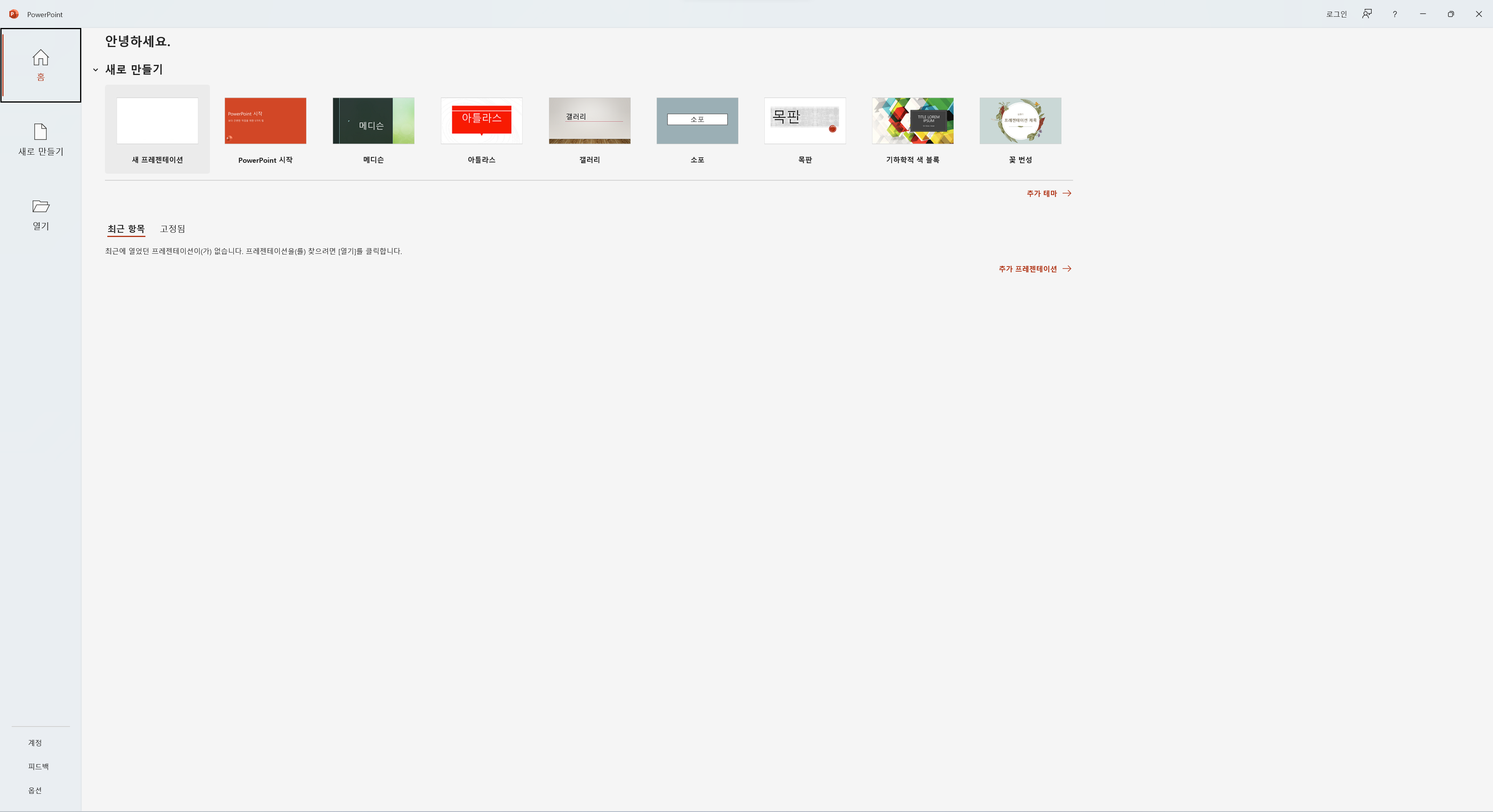 파워포인트 메인 화면에서